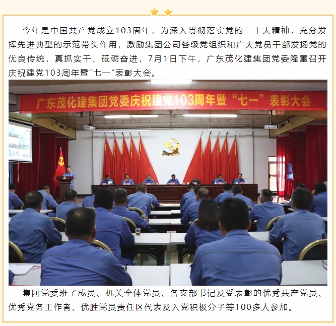 廣東茂化建集團(tuán)黨委召開慶祝中國共產(chǎn)黨成立103周年暨“七一”表彰大會(huì)