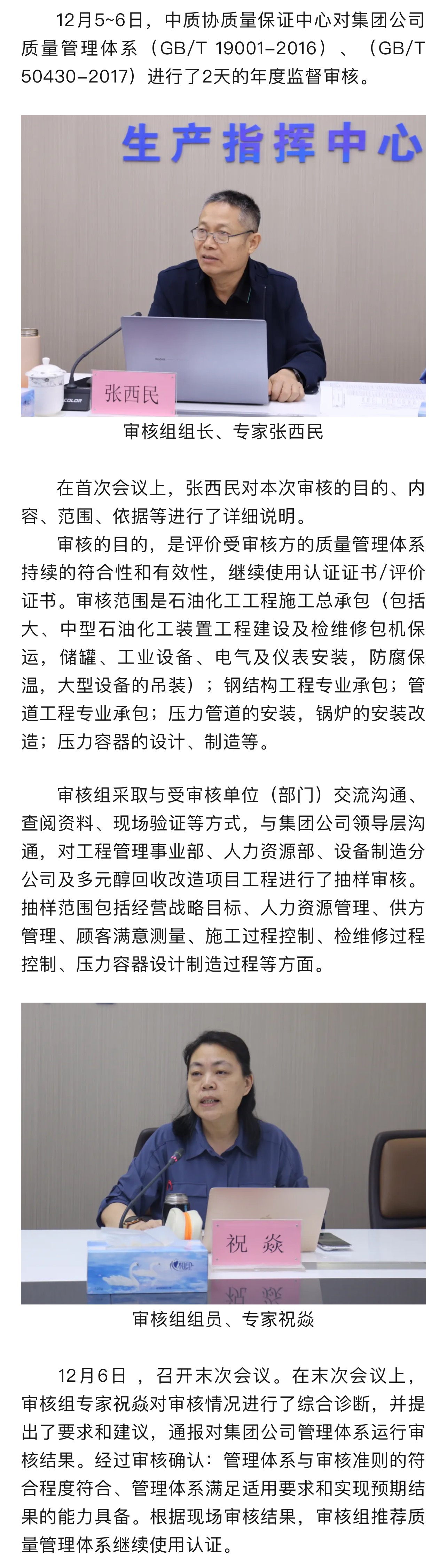 集團(tuán)公司通過質(zhì)量管理體系年度監(jiān)督審核