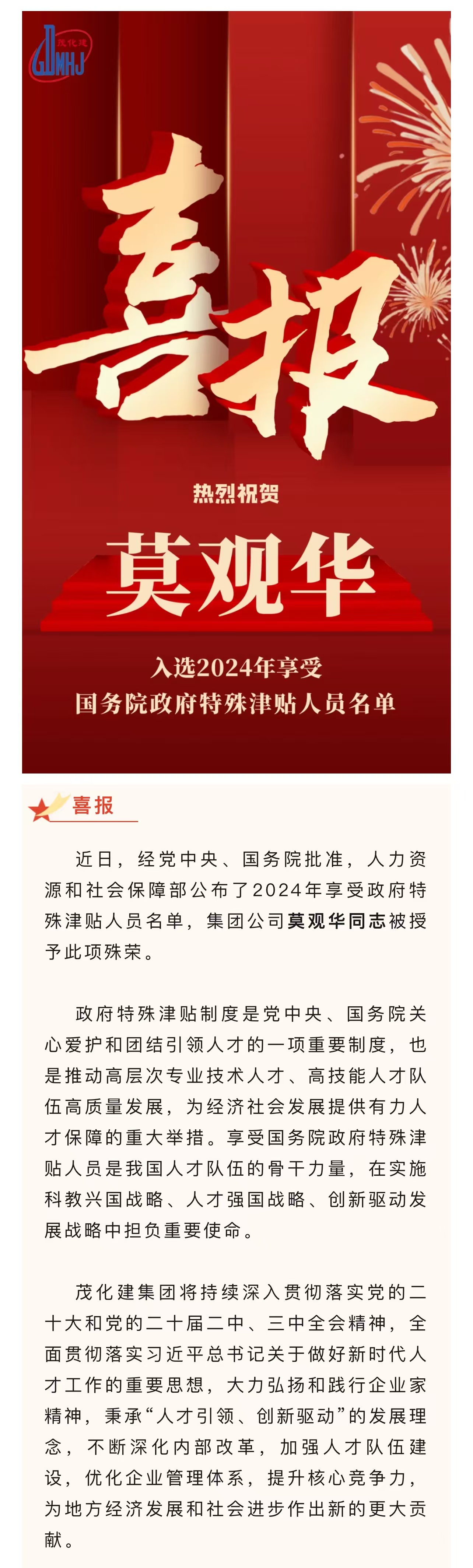 喜報:莫觀華入選享受國務(wù)院政府特殊津貼人員名單