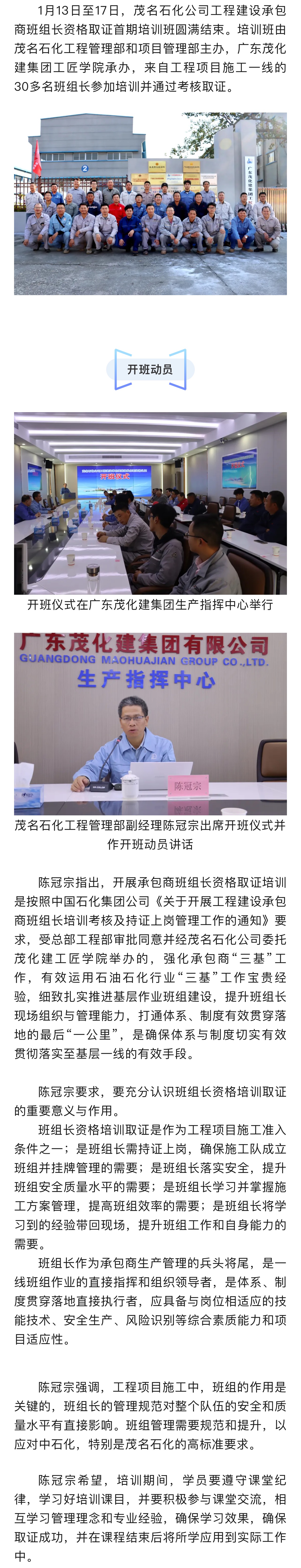 茂名石化工程建設(shè)承包商班組長資格取證首期培訓(xùn)班圓滿結(jié)束