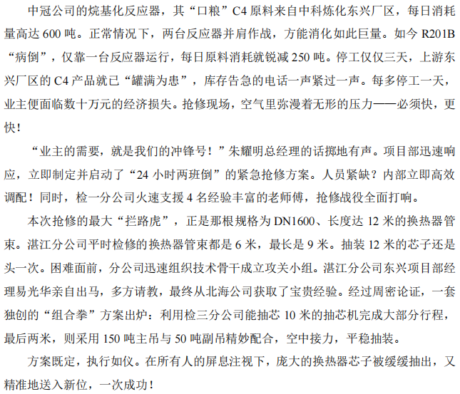 湛江分公司中冠項目部搶修烷基化反應(yīng)器紀(jì)實