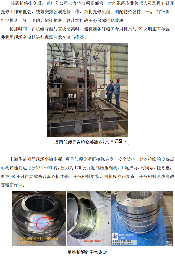 上海華誼項目部合成氨裝置聯(lián)合機(jī)組搶修紀(jì)實